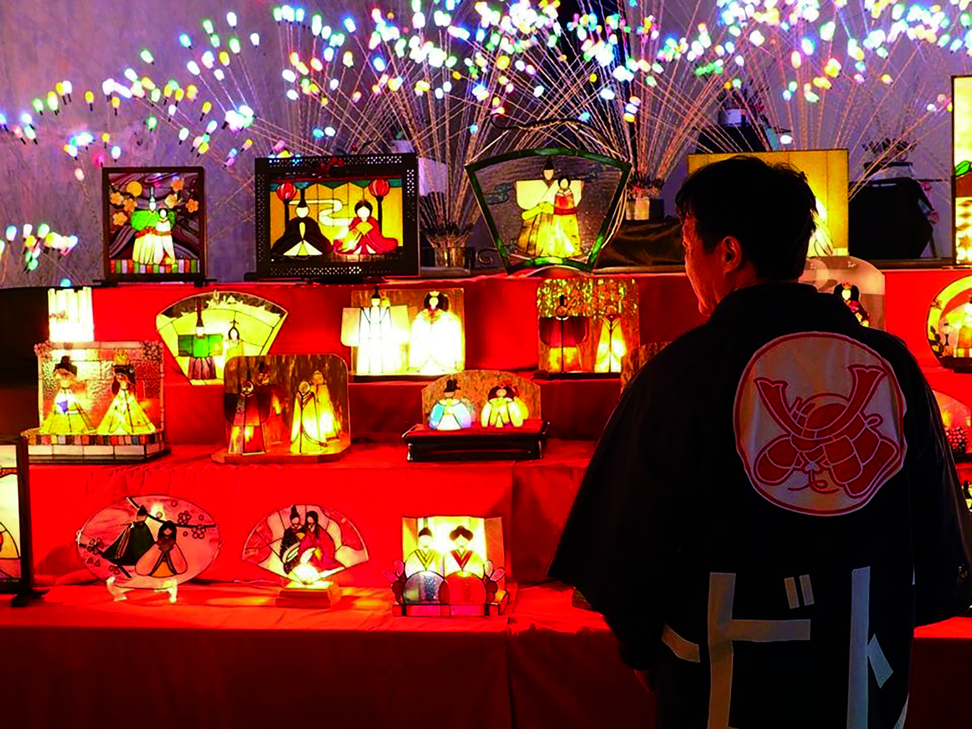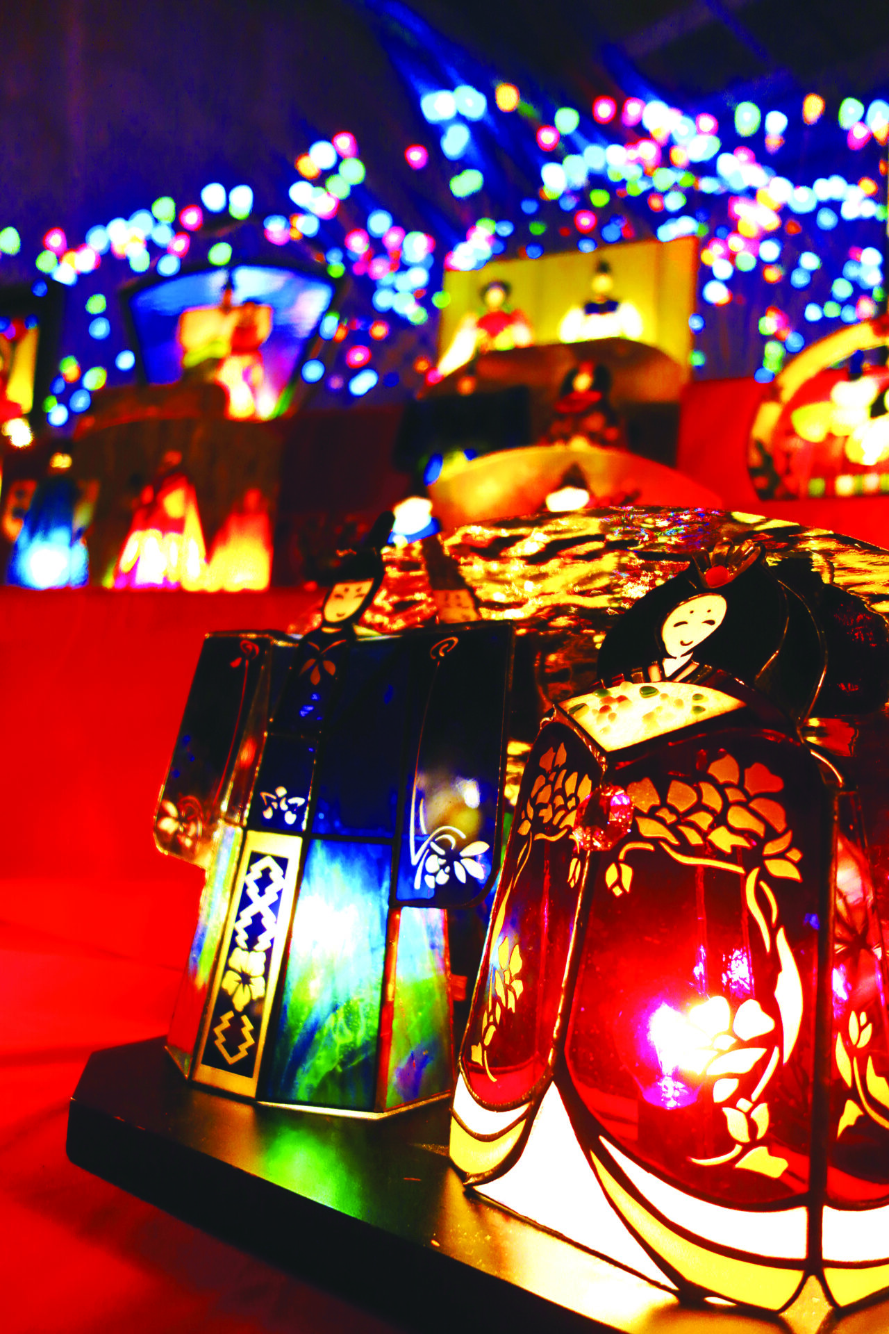 赤レンガにきらめく、100体以上のステンドグラスのお雛様